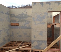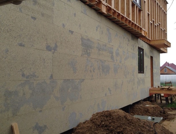 Фибролитовые плиты плотностью 570 кг/м3 и толщиной 25 мм используют в качестве обшивки каркасных домов. Плита может поставляться в размерах 3000х600. Материал подходит для внутренней и наружной обшивки каркасного дома из бруса или ЛСТК. Повышенная плотность позволяет использовать материал в несъемной опалубке, при монтаже черновых полов и обшивки цоколей. Монтаж осуществляется на гвозди или другие метизы. Плита выдерживает ветровую нагрузку, не боится влаги и не разрушается под действием солнечных лучей. Группа горючести материала - Г1. Высокая энергоэффективность и экологичность материала позволяет использовать его при внутренней отделке жилых помещений.